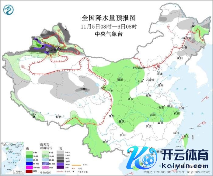 11月6日8时至7日8时开云官网切尔西赞助商,新疆北部和东部、甘肃中西部、青海东部、内蒙古东北部和中西部、黑龙江北部等地部分地区有小到中雪或雨夹雪,其中,新疆沿天平地区、内蒙古中部等地部分地区有大雪(5~9毫米),新增积雪2~4厘米,局地可跳跃8厘米。山西南部、黄淮西部、江淮西部、江汉东部、重庆东北部、海南岛东部等地部分地区有中到大雨,其中,海南岛东南部局地有暴雨(50~60毫米)。内蒙古西北部、黑龙江东北部等地部分地区有5~6级风。