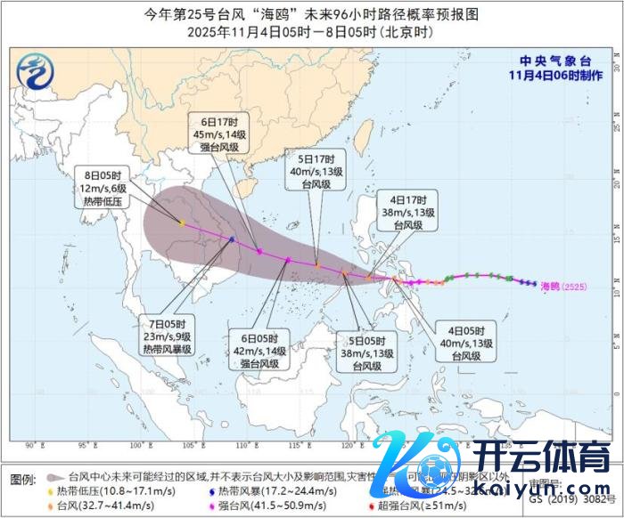 第25号台风“海鸥”未来96小时旅途概率预告图
